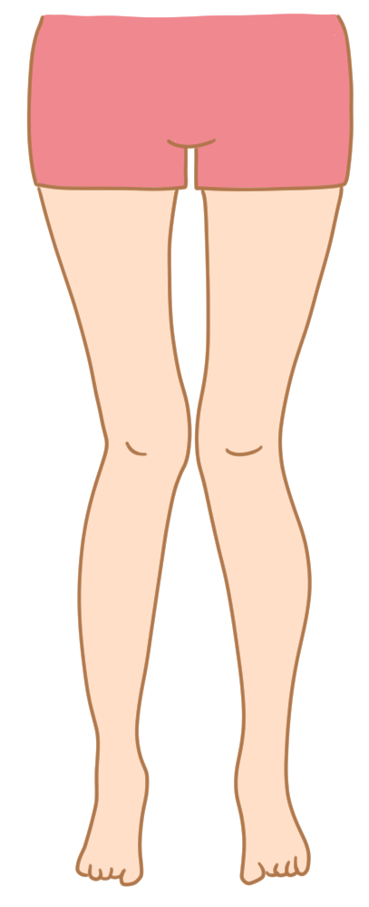 X脚とは、立ったときに膝が内側に向き、くるぶし同士が離れてしまう脚の形のことです。