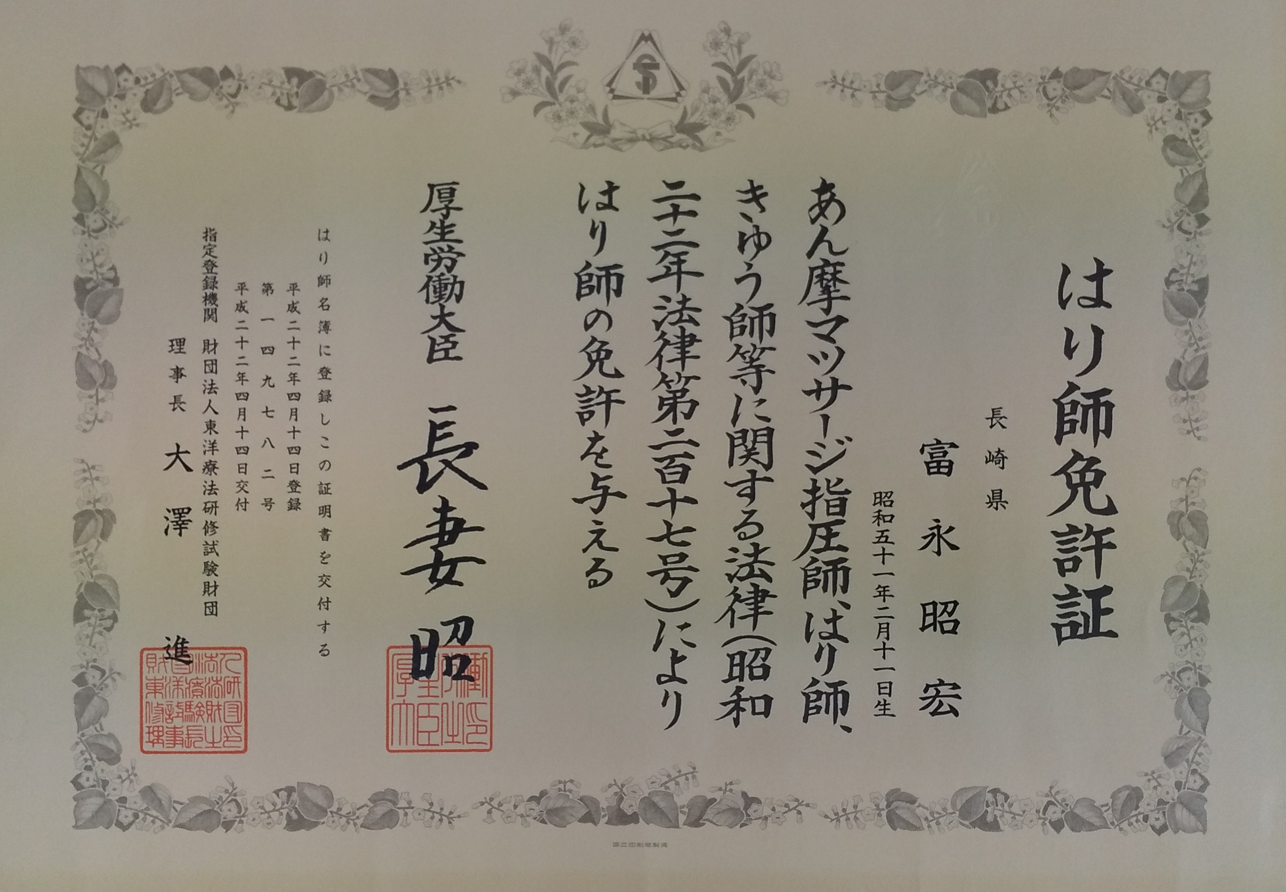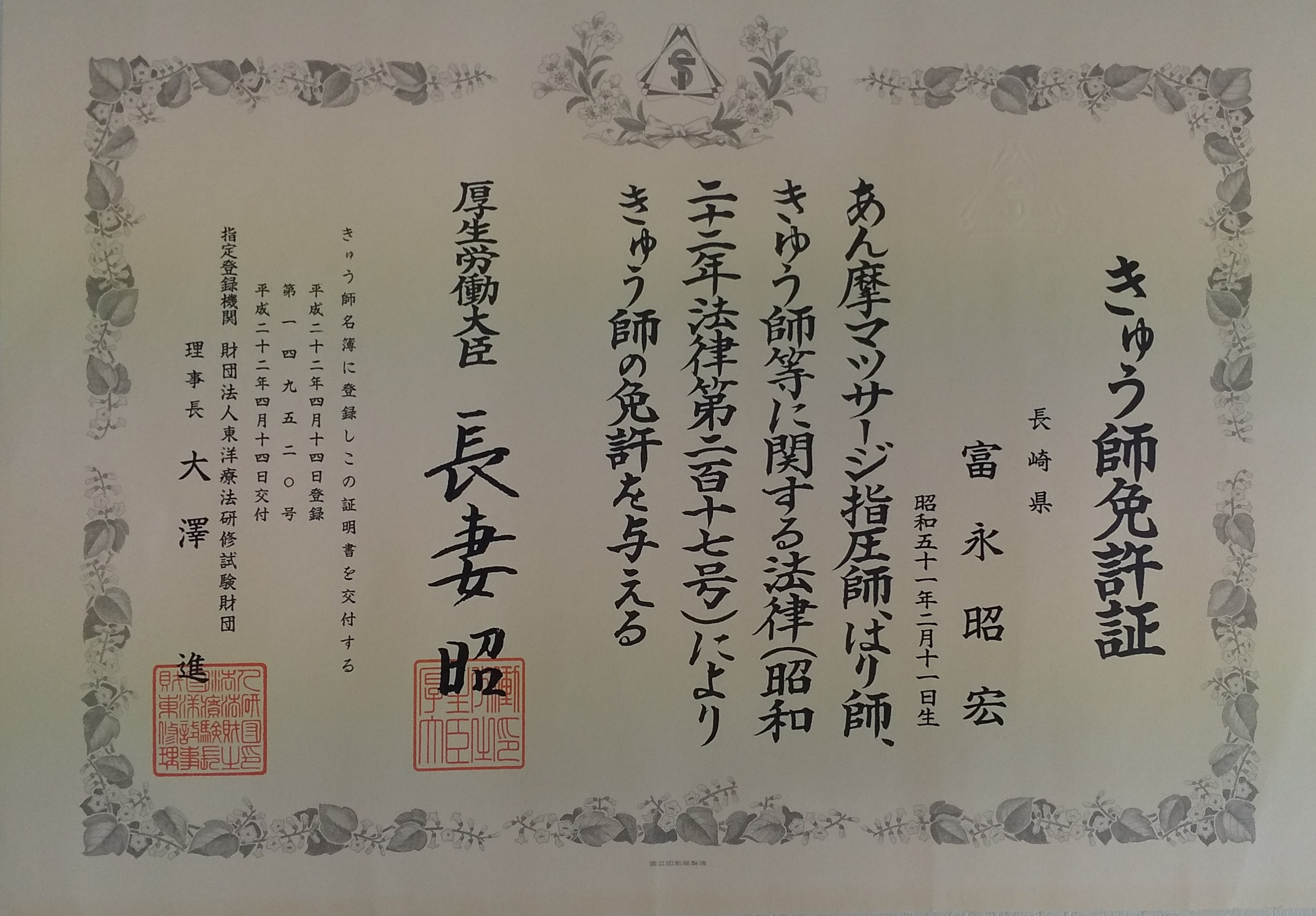 『箕面とみなが整体院』 院長 富永昭宏です。